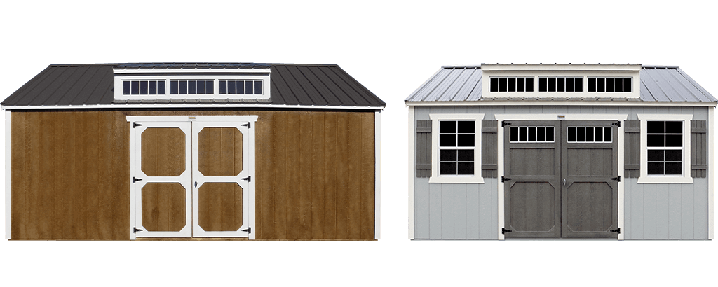 The Lofted Barn option includes loft decking above the porch area for added storage while the Utility Shed option includes 8ft walls, creating added vertical space for shelves or other types of storage.