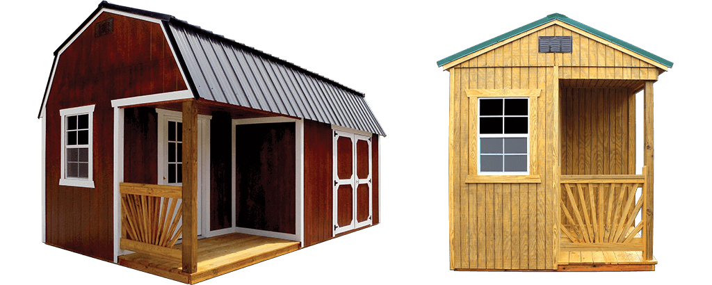 - 4ft depth porch with railing on short side (porch included in total building length)