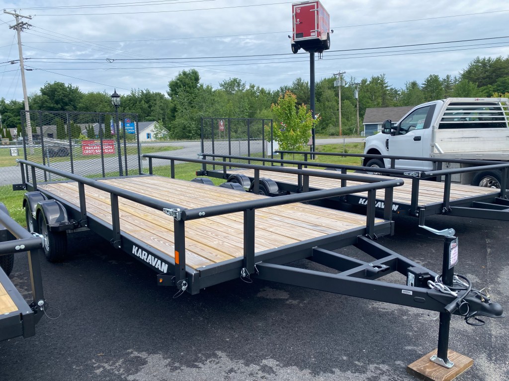Standard features: Black powder coated finish, 2″ square tube-top rail, wrap-around tongue, 15″ radial tires on silver rims, 2×8 pressure treated decking, LED lights, spare tire mount, 4′ mesh ramp/gate, Dexter EZ-lube axles, set-back flip-up jack, 4 tie down loops.